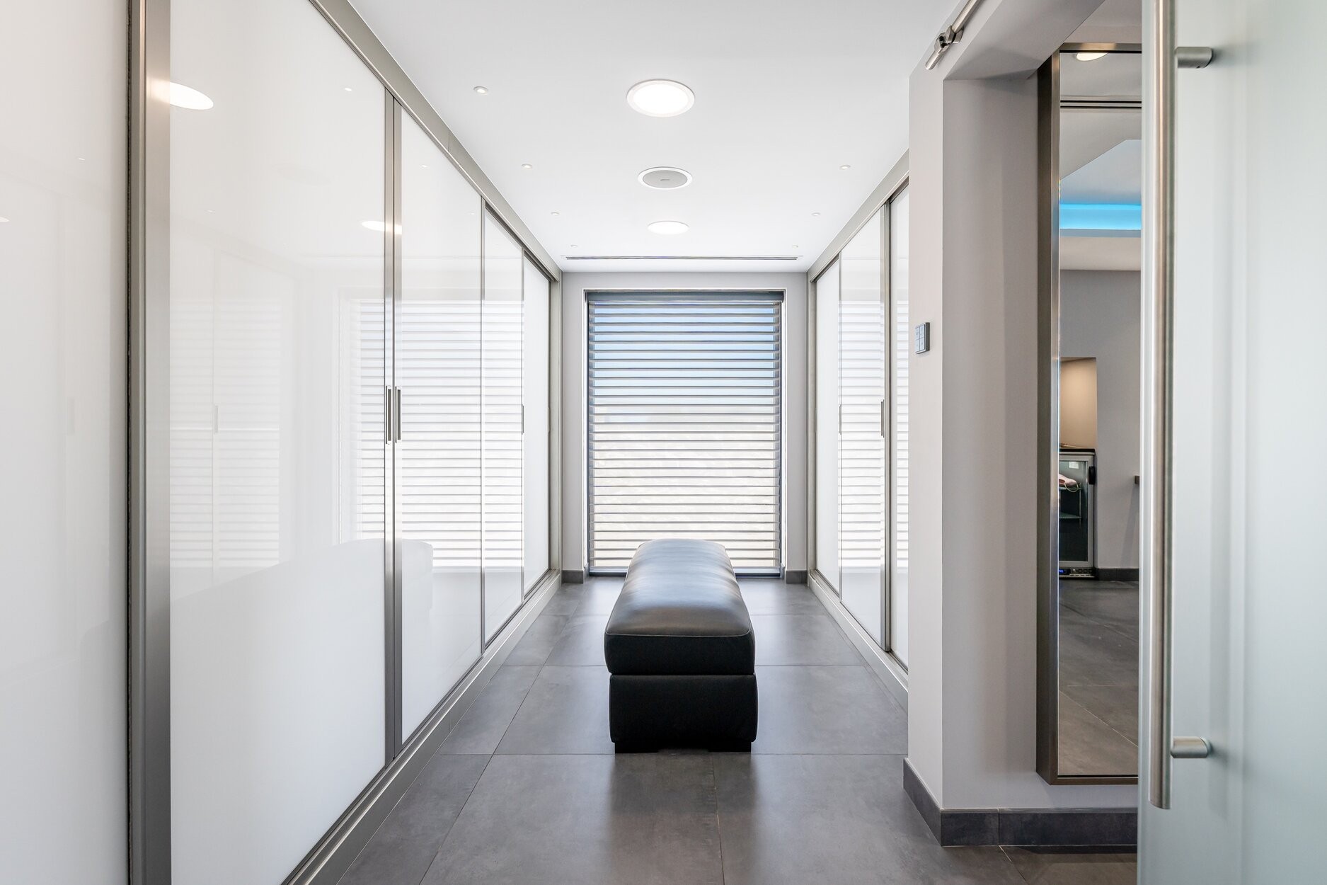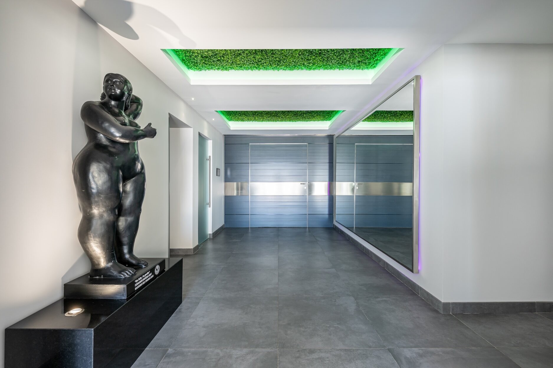 An attractive, contemporary style, south facing 4 bedroom beach house with impressive, very tall palms with the Mediterranean Sea as background! Photos of this property might have you convinced it’s located in an ultramodern escape in Hamptons, sunny California or oceanfront Miami. In reality, this stunning modern house proudly is situated by a very private, Mediterranean beach in Mijas Costa.. Abundance of glass, open plan concept, geometric volumes and also shapes and lines are iconic for the modern contemporary style but this villa stands out from all the other modern homes. Its exceptional design is truly outstanding and innovative, reflecting the highest standards in contemporary architecture. The ultra-stylish interiors benefit from avant-garde and futuristic style, green vertical elements and also bespoke accent walls. Add some truly indulgent outdoor spaces! It’s a masterpiece! “Only the best is good enough” has been the concept behind the project of this home created in 2018 for the most luxurious stress-free life. Set on a large 2.190 m² plot, this special villa of 561 m² is built on one level with 700 m² covered and also open terraces leading to outdoor areas enjoying delightful water features. The ‘wow’ factor comes right the moment you enter a show-stopping entrance hall with exquisite ceiling and lighting design, a mirror wall and statement artwork. It’s see-through and inspirational vistas set the mood for the entire home at once! An amazing open plan living room unites a fireplace salon and a dining room, the light-filled, free-flowing interior spaces with bespoke design touches and bilateral symmetry technique providing balance within the room. All 4 bedroom suites have their own luxurious bathrooms and independent Domotics; Master suite boasts a sauna and Jacuzzi. An inspiring ergonomic kitchen has sleek flat-panel cabinets, top-quality Miele appliances, an island with an informal dining area, a wine cooler and a pantry. There is also an office with ethnic chic details, 3 guest toilets, laundry room and a storage. The garage has space for at least 3 cars; there is an ample outdoor parking for several cars, also a marine vehicle garage conveniently located next to the beach gate. This energy-efficient and eco-friendly property is in excellent condition with cutting-edge technology systems throughout for maximum security and comfort (solar panels, air-conditioning, underfloor cooling and heating system, Bose & Sonos stereo surround system, sophisticated lighting, security shutters, alarm and also double glazing, etc.). Truly must be seen!